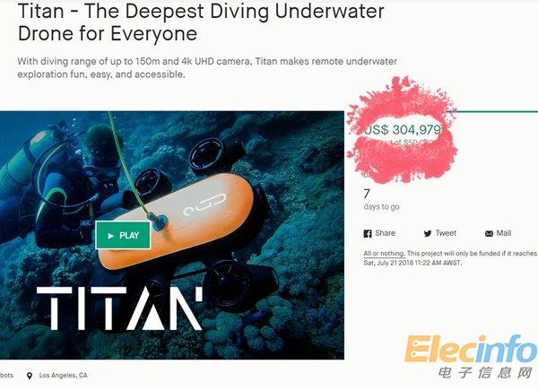 水下無人機泰坦眾籌總額已破30萬美金
