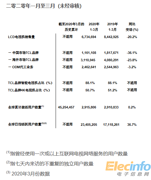 TCL電子2020年首季度電視機(jī)銷售量達(dá)673萬臺